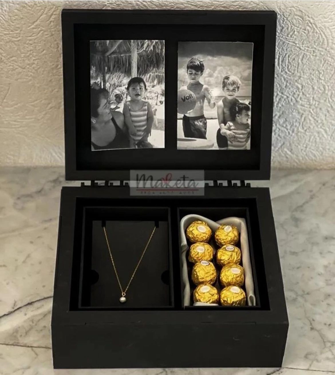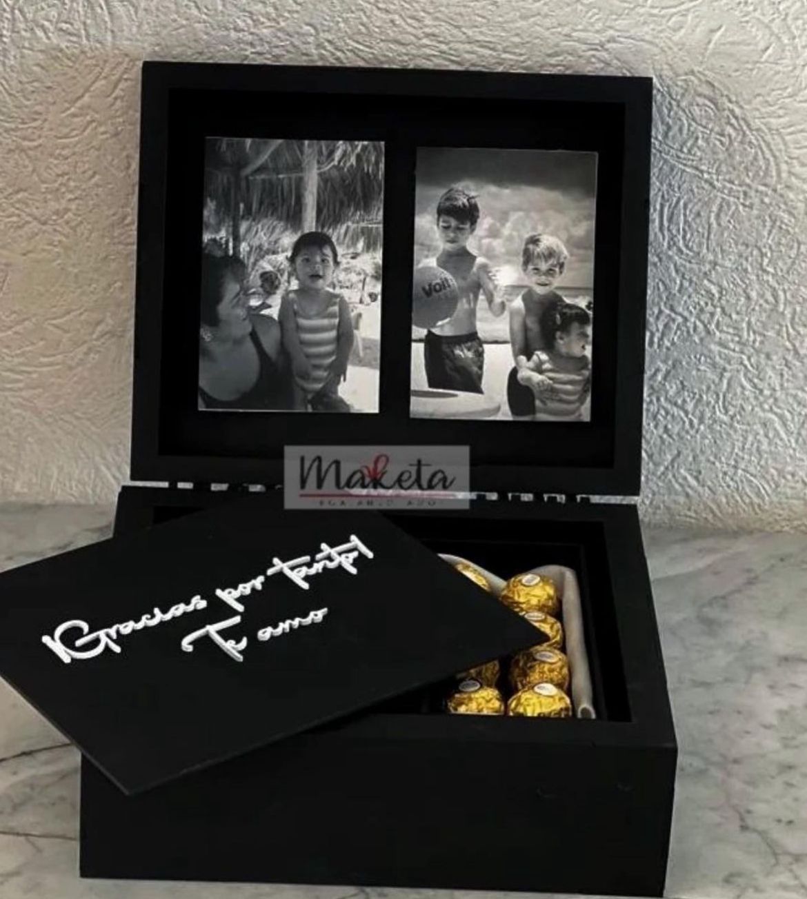 Incliye personalizacion de tapa y contratapa, 2 fotos, chocolates ferrero y 1 collar