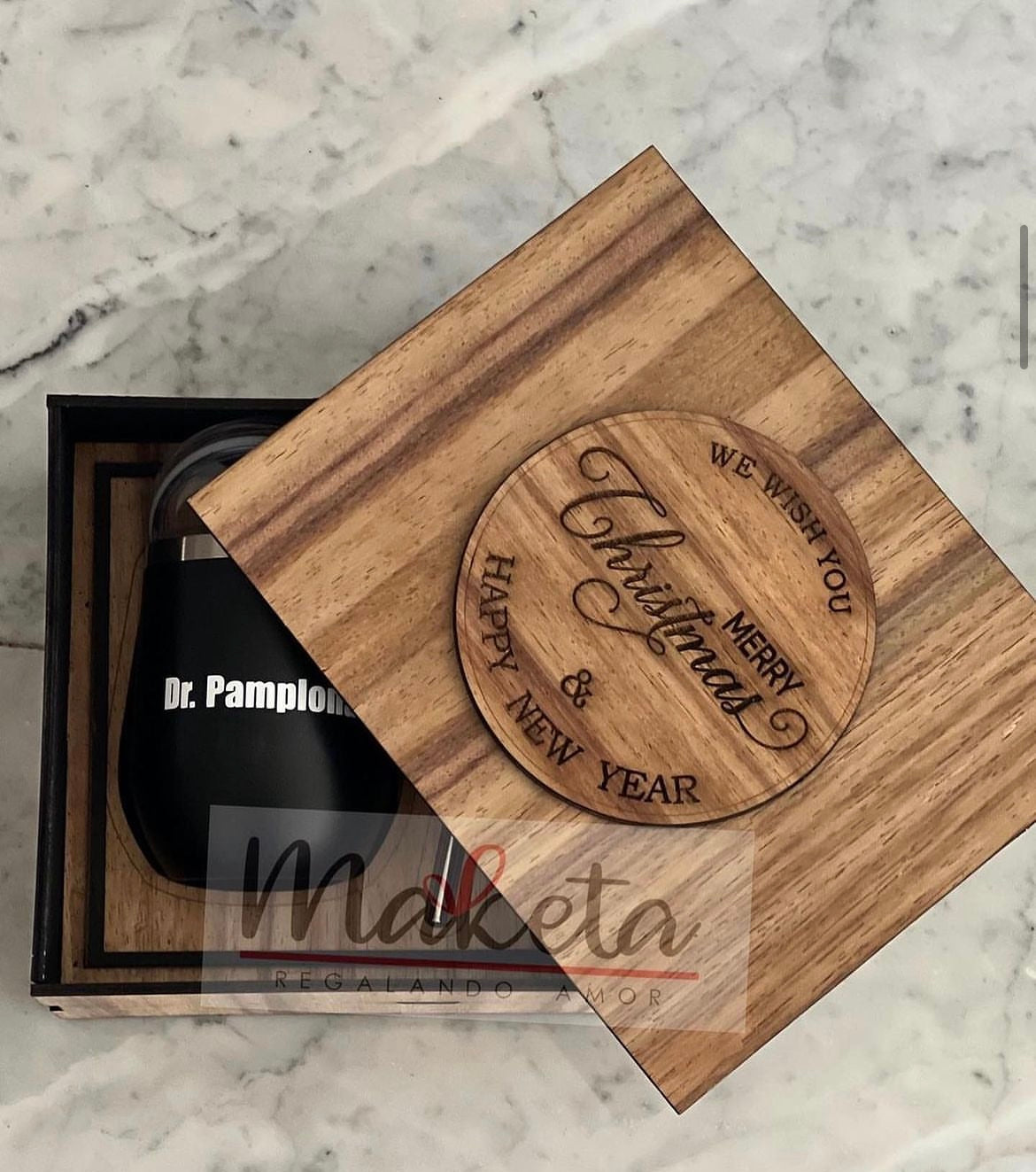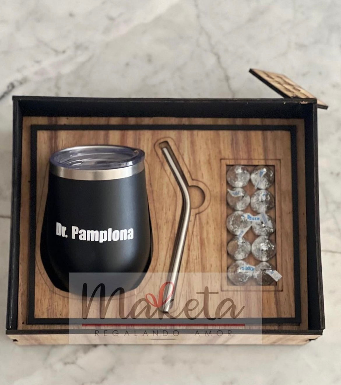 Incluye termo personalizado, popote de acero inoxidable y 10 chocolates