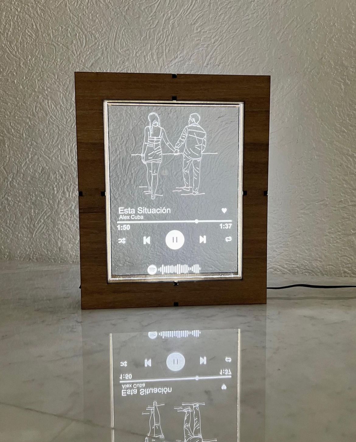 Incluye silueta de foto (2 personas), canción y codigo spotify.